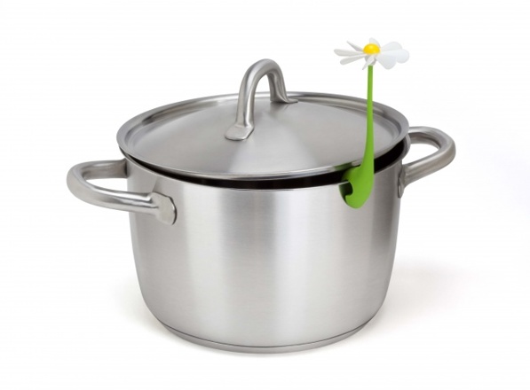 Ez a kis margaréta formájú műanyag eszkőz a fazék szélére csiptetve eltartja egy kicsit a fedőt, így a főzés közben keletkező gőz könnyedén távozhat. És még cuki is... :)