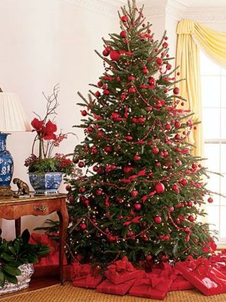 Hűha, aki ezt a karácsonyfát díszítette valószínűleg imádja a pirosat! Csupa piros díszek, és még az ajándékok is pirosba vannak csomagolva!