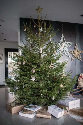 Ezt a karácsonyfát bohókás figurákkal díszítették, mint például fából faragott szarvasfejjel, horgolt bagollyal, vagy épp jegesmedvével. A fán körbefut egy természetes anyagból készült szalag és egy felirat is felkerült rá.