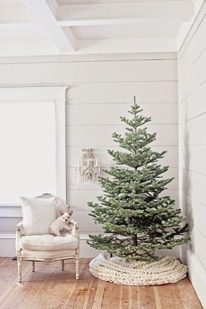 Teljesen csupasz fa, ami alá egy gyönyörű kötött pléd került. Én személy szerint a feldíszített fákat preferálom, de egyébként ez is nagyon tetszik!