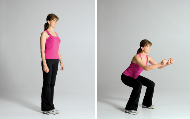 Állj zárt lábakkal. Lépj ki az egyik oldalra, és guggolj le úgy, mintha egy székre próbálnál meg leülni. A térded ne menjen a lábfejed elé. Miközben jössz fel told felfelé a mellkasod, ezzel is segíted hogy a hátad egyenes maradjon. Térj vissza a kiinduló helyzetbe, majd ismételd meg a mozgást az ellenkező irányba is. Csinálj belőle 2x10-et