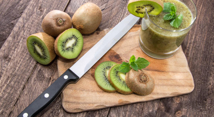 A kivinek nagyon alacsony a kalóriatartalma, így segít megőrizni a vonalainkat, és pektintartalmának köszönhetően könnyedén rendbe teszi az emésztésünket. Kettő meghámozott és felvágott kivit turmixolj össze 1-1,5 dl zsírszegény tejjel, és ha más ízesítőt nem szeretnél tenni hozzá, akkor már fogyaszthatod is a rostban gazdag zöld finomságot.