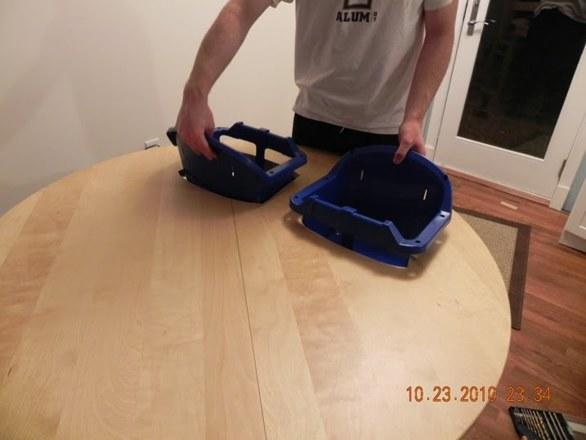 Ezért fogta a saját étkezőasztalukat, vágott bele két lyukat, s oda helyezte a műanyag babaüléseket.