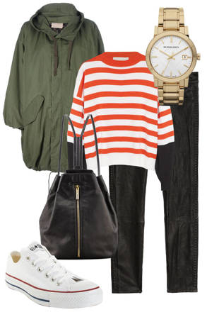 Ez a sportos összeállítás nem csak sporteseményekre ajánlott, de minden olyan napra, amikor kényelmes ruhára van szükséged. A bőrnadrág teljesen feldobja a sportos öltözetet.