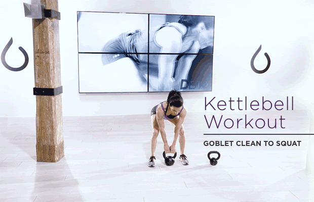 1.Tarts magad előtt egy súlyzót vagy gömbsúlyzót: mindkét kezeddel alulról tartsd a súlyt (a „serleget”) a mellkasod magasságában. Állj vállszélességű terpeszbe, lábujjaid pedig enyhén kifelé forduljanak.