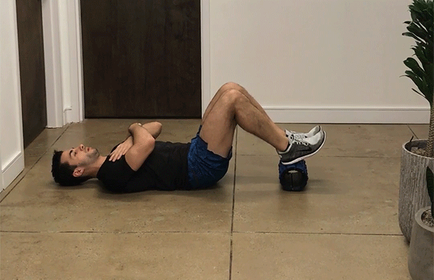 1.Feküdj le egy padra úgy, hogy a talpaid szorosan a talajon helyezkedjenek el. Hajlítsd be a térdeid úgy, hogy lábfejeid nagyjából 15 centire legyenek a fenekedtől.
