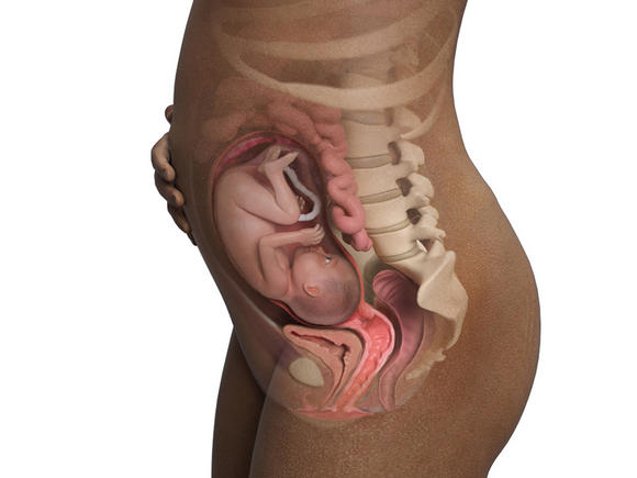 Magassága 28 centiméter körül lehet. Súlya hozzávetőleg 450-500 gramm sokat mocorog, forgolódik, még van helye nyújtogatni a kezecskéit, lábacskáit, de már egyre kevésbé tudja teljesen kiegyenesíteni. A pocakon belül elképesztően akrobatikus pozíciókat képes felvenni. A testének felszíne vörös, ráncos. Mostanság kezd a bőre alá rakódni a zsírréteg, ami a bőrét feszessé teszi, és rózsaszínűre színezi.