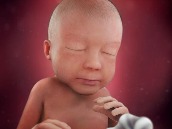 Magassága 35,5 centiméter körül lehet. Súlya hozzávetőleg 1100 gramm. A szemét már ki tudja nyitni, gyakran pislog. Ha most meg kellene születnie, akkor jó eséllyel maradna életben. Már olyan modern eszközeink vannak, hogy a fejlett, egészséges babát képesek életben tartani.