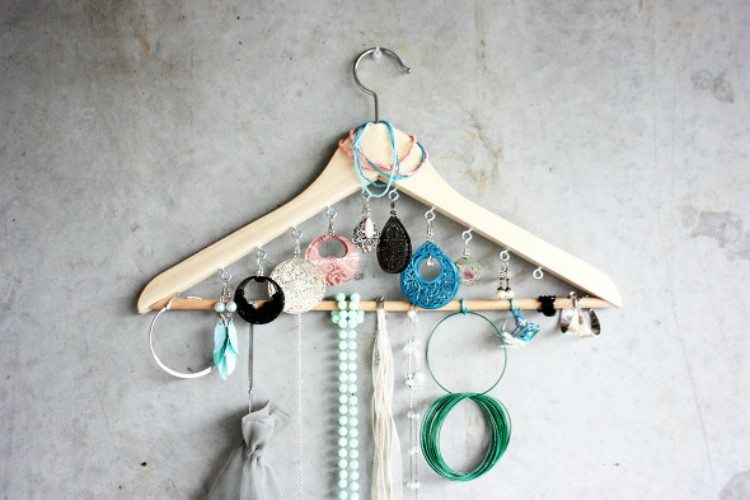 Nyakláncok, karkötők, lógós fülbevalók és még mennyi minden. Ha az ékszerek rendezetlenek, össze vannak gabalyodva úgy, hogy még rájuk nézni is rossz, nem csak, hogy nem hordjuk őket, de bizonyos darabok még tönkre is mehetnek. Nem kell azonban drága ékszertartót venned ahhoz, hogy minden szépen álljon, csak vegyél ki néhány vállfát a szekrényből, tekerj bele pár kampót és akaszd fel.