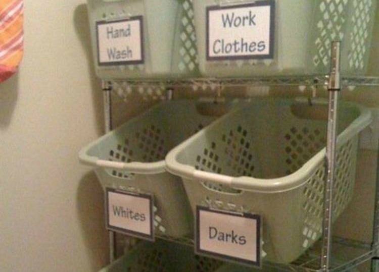Minden jobban működik, ha van egy jó rendszerünk. Annyi kosarat használhatsz, amennyi csak kell és csinálj olyan kategóriát, amilyet csak akarsz – fehér, színes, sötét. Lehet, hogy nincs helyed egy ilyen polchoz, de a felcímkézett tárolókkal biztos, hogy gyorsabban fog menni a mosás.