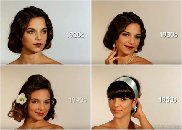 Ebben az időszakban nem túl sok változás történt, ami a frizurákat illeti. Hatalmas divat volt az úgynevezett Marcell vízhullám berakás, ami évtizedeken át tartotta is magát. Smink fronton azonban változott a divat, a halvány, romantikus sminket felváltották az erőteljesebb színek, először az ajkakon, később pedig a szemhéjon is. Íme az első néhány évtized képeken: