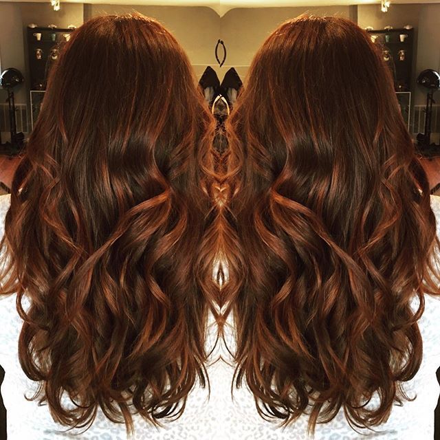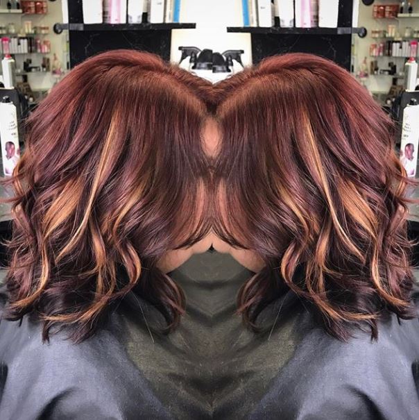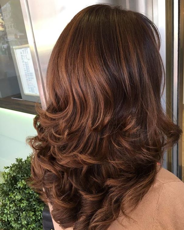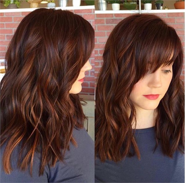 Ezt a rozsdás vörösesbarna színt a meleg balayage fények teszik még szebbé.