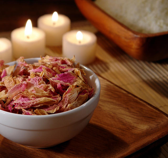 Jól mutatnak a különböző színárnyalatú virágszirmok: a szarkaláb sárga, rózsaszín vagy kékes-lilás virágai, a levendula jellegzetes illatú virágfüzérei vagy a here gömbvirágzata. Az illatos levelek közül használhatunk babérlevelet, citromillatú muskátli levelét, a termések közül borókabogyót. Gyakran alkalmazzák különböző nőszirmok gyökérporát is. A virágszirmokat, leveleket és a citrushéjat szárítsuk meg rácson. Ez kb. 7-10 napot vesz igénybe. A szárított leveleket és a virágszirmok egy részét morzsoljuk szét, majd dolgozzuk össze.