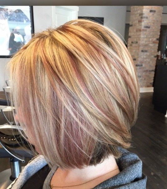 Ha szeretnéd egy kicsit feldobni a frizurádat, de nem szeretnéd, hogy az egész hajad rose gold legyen, akkor válassz kisebb rózsaszínes csíkokat! Ez a bob fazon remekül mutat a különleges csíkokkal!