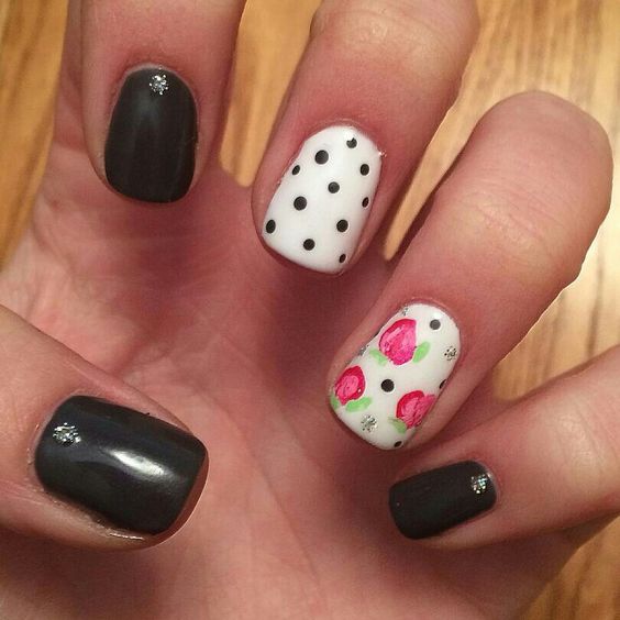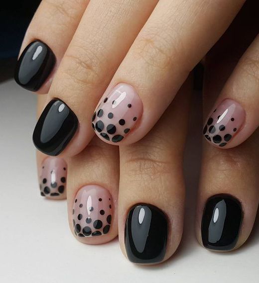 Fekete körmök néhány egyszerű pöttyel